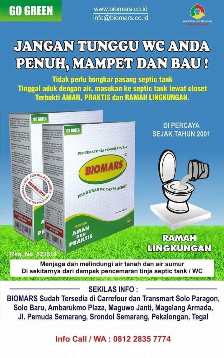Biomars Penguras WC tanpa sedot dan penghilang bau. Tinja dalam septic tank akan diurai oleh mikroba menjadi air.